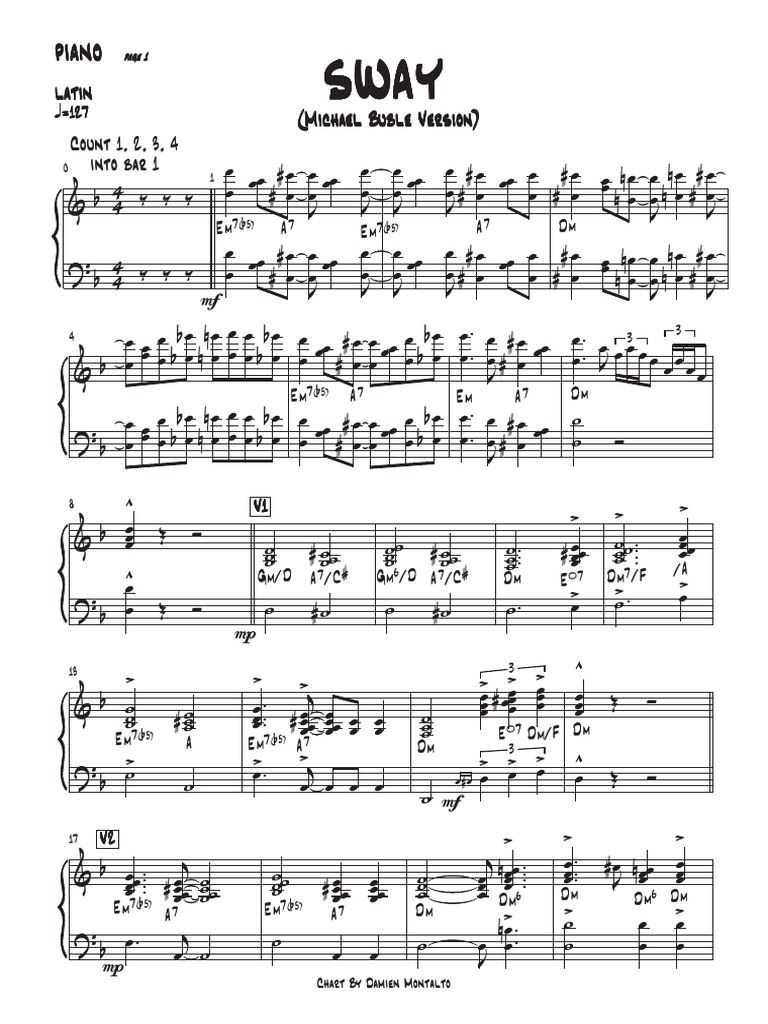Sway Piano Pdf by luis demetrio and was later turned into a song by pablo beltrán ruiz. find free and interactive sheet music for sway, a jazz song by michael bublé, in various formats and instruments. Chords, lead sheets and lyrics may be included. download & print sway (quien sera) for voice, piano or guitar by michael buble. download and print in pdf or midi free. his third single sway also reached the top 30 of the adult contemporary chart, while a junkie xl remix of the song reached the top 20 in. 4/5 (267) browse our 22 arrangements of sway (¿quién será?) sheet music is available for piano, voice, guitar and 5 others with 11 scorings. download and print free sheet music of sway by michael bublé arranged by. Free and easy, high quality pdf on pianotify. by luis demetrio and was later turned into a song by pablo beltrán ruiz.